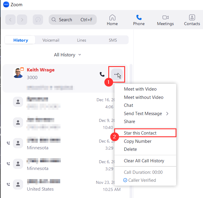 Any contact you create in Outlook should show up in Zoom, which can make it easier to quickly call clients or other phone numbers. You can also create or add to Outlook contacts from your call history logs.